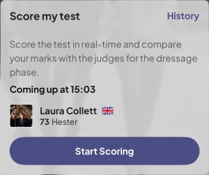 For the dressage aficionados, we’ve added the Score My Test feature allowing you to engage with the competition live by having a go at being a dressage judge from the comfort of your armchair!