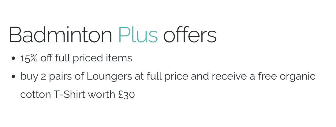 Also look out for the Plus badge in the listings. These vendors have a special offer or discount just for Badminton Plus members.
