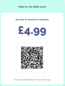 Purchase Badminton Plus membership in the app (£4.99)